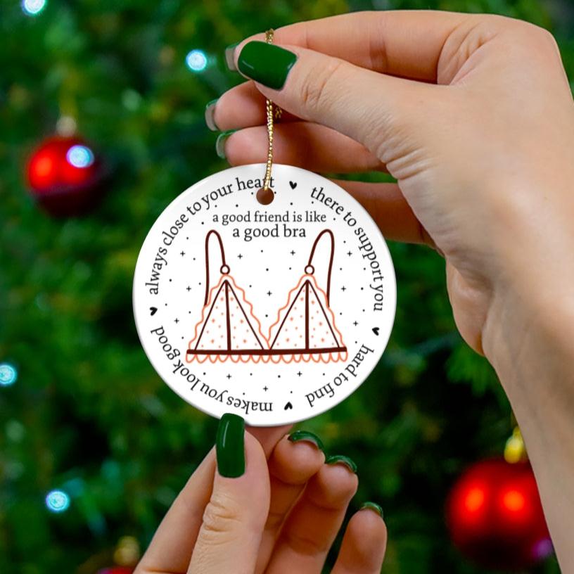 Bring a touch of humor and friendship to your holiday decor with this "A Good Friend" Ceramic Ornament. Perfect for those who appreciate a good laugh and a heartfelt sentiment. Ideal for Christmas, Hanukkah, birthdays, and friendship celebrations.