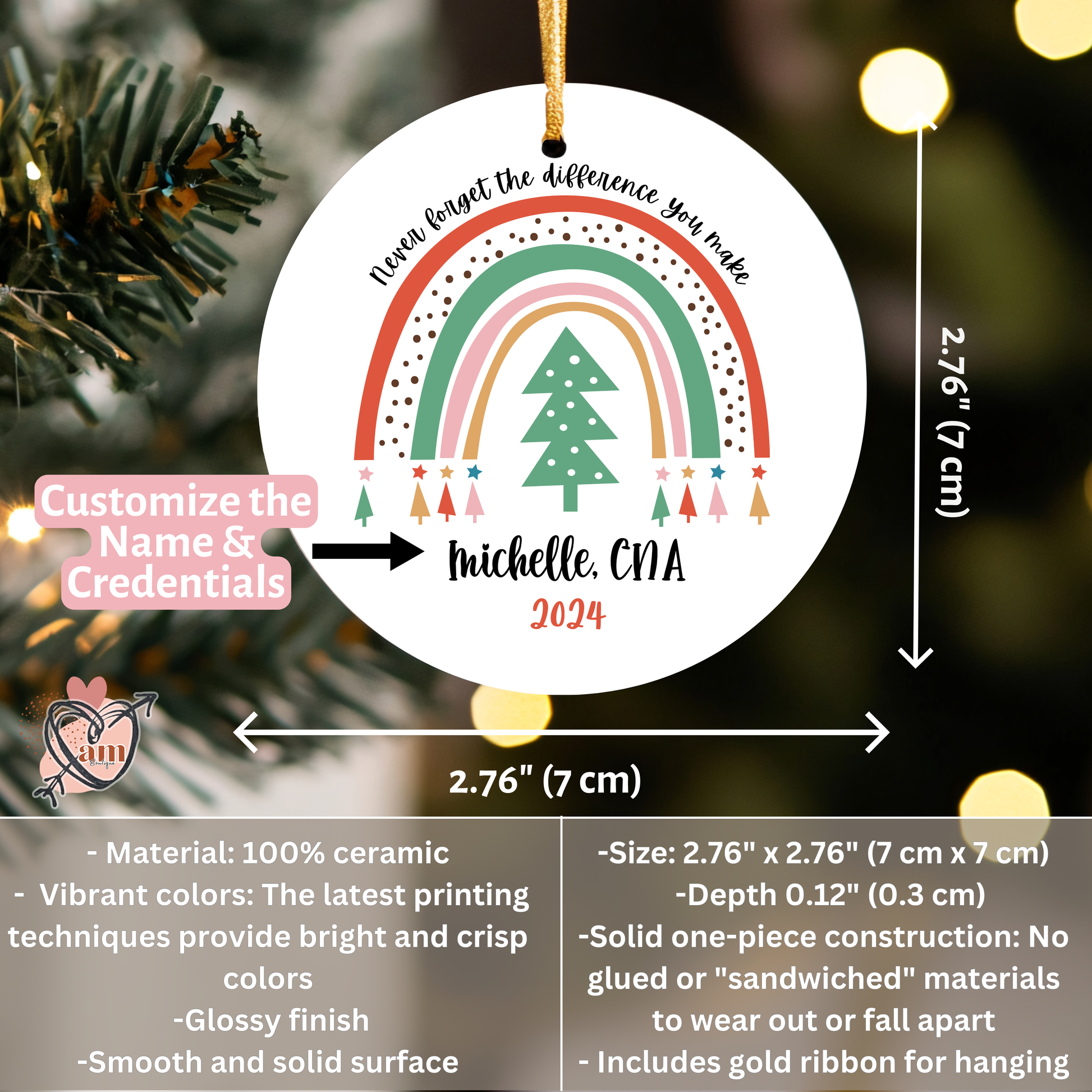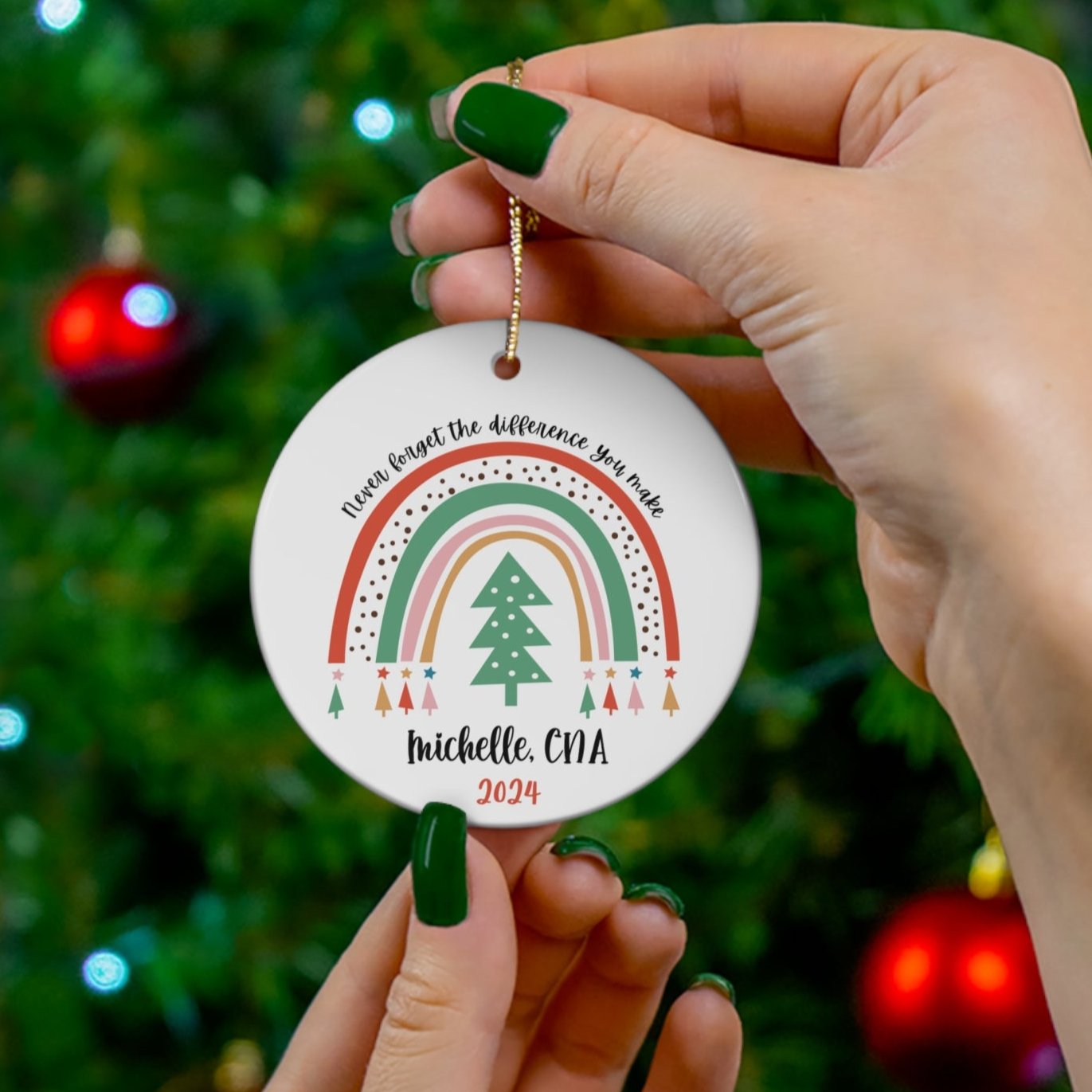 Personalized Unit Nurse Ornament with vibrant colors and a glossy finish. Perfect for Christmas tree decoration, this ceramic ornament makes a great holiday gift for nurses in 2024. Suitable for him or her.