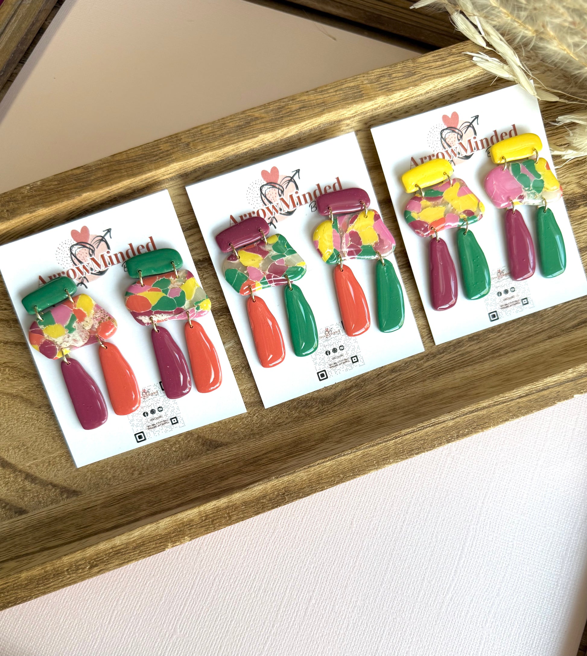 My Polymer Clay earrings are extremely lightweight, meticulously made by me in my home with quality materials and care. Not only are they lightweight and comfortable to wear all day; they are sure to make a statement and add a little fun to your wardrobe or even make the perfect gift!