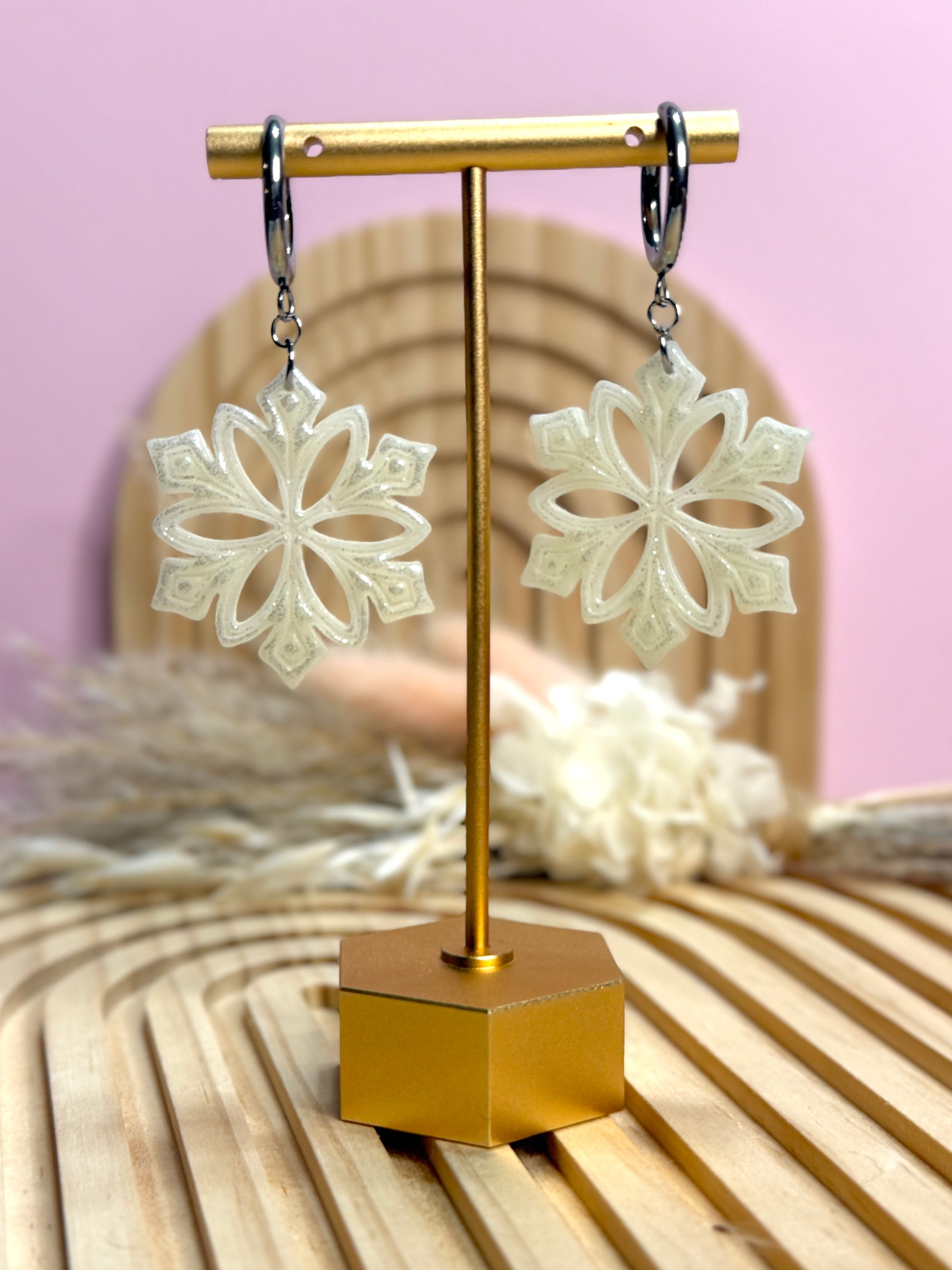 Unleash your holiday spirit with these handcrafted snowflake earrings! Made with shimmery polymer clay and hypoallergenic components, this lightweight accessory is perfect for adding a touch of festive cheer to any outfit. Plus, it makes for a perfect gift for anyone on your list! Don't miss out on these one-of-a-kind earrings and order now.