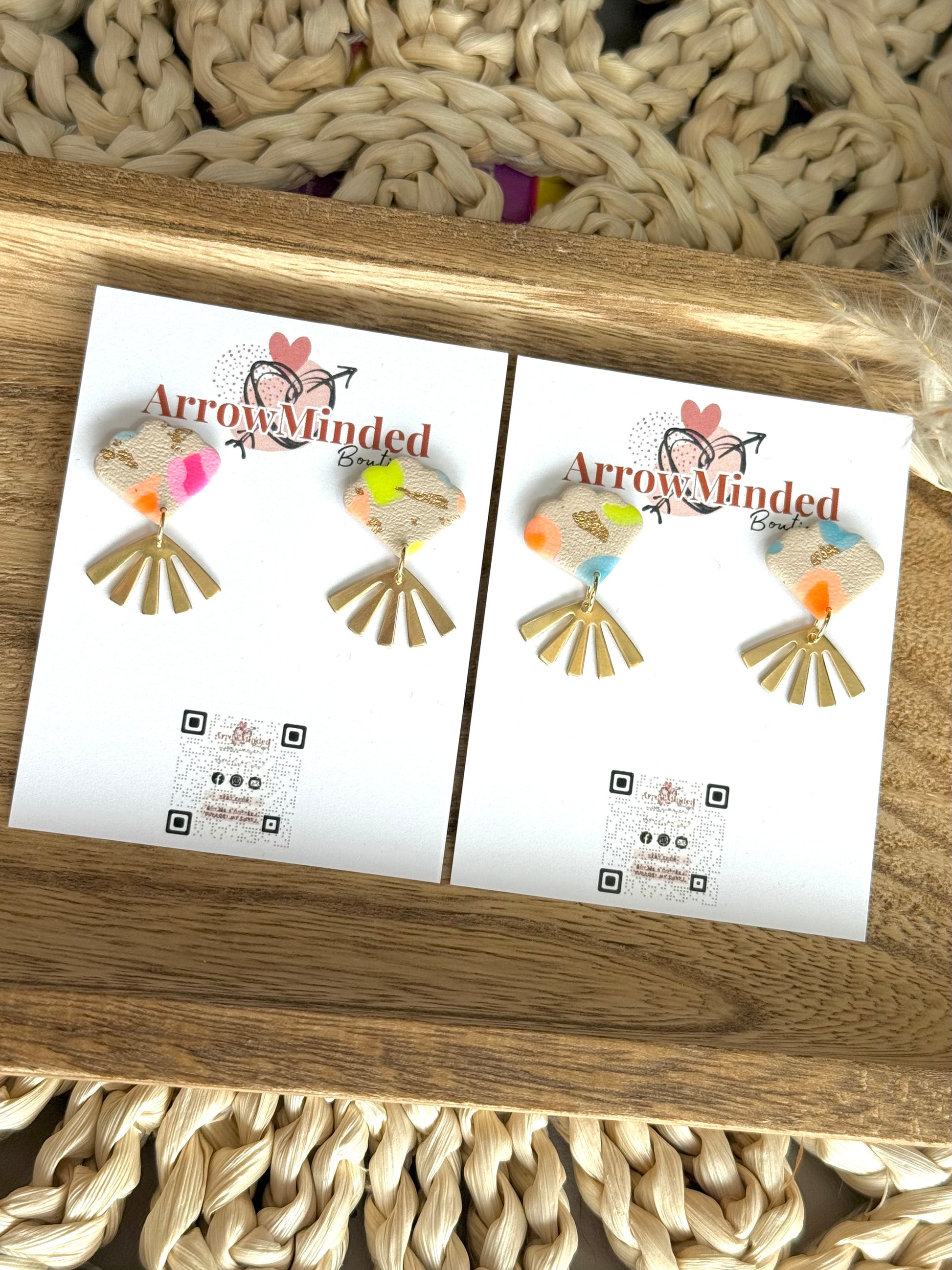 Indulge in these handmade Neon & Neutral Electric Petal Earrings! Crafted with lightweight polymer clay and hypoallergenic components, these unique earrings feature a playful blend of neon and neutral colors in a trendy floral shape. Perfect for spring and gifting, embrace their cheerful vibe!