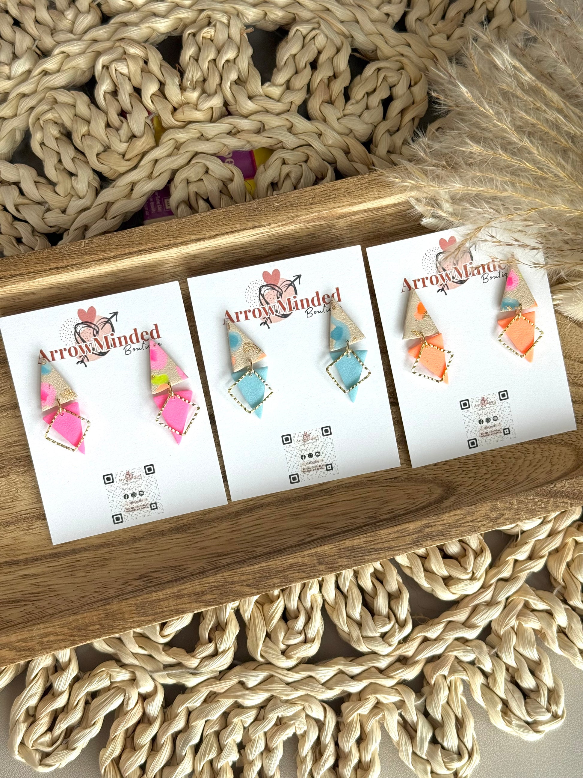 Indulge in these handmade Neon & Neutral Triangle Earrings! Crafted with lightweight polymer clay and hypoallergenic components, these unique earrings feature a playful blend of neon and neutral colors in a trendy Chevron shape. Perfect for spring and gifting, embrace their cheerful vibe!