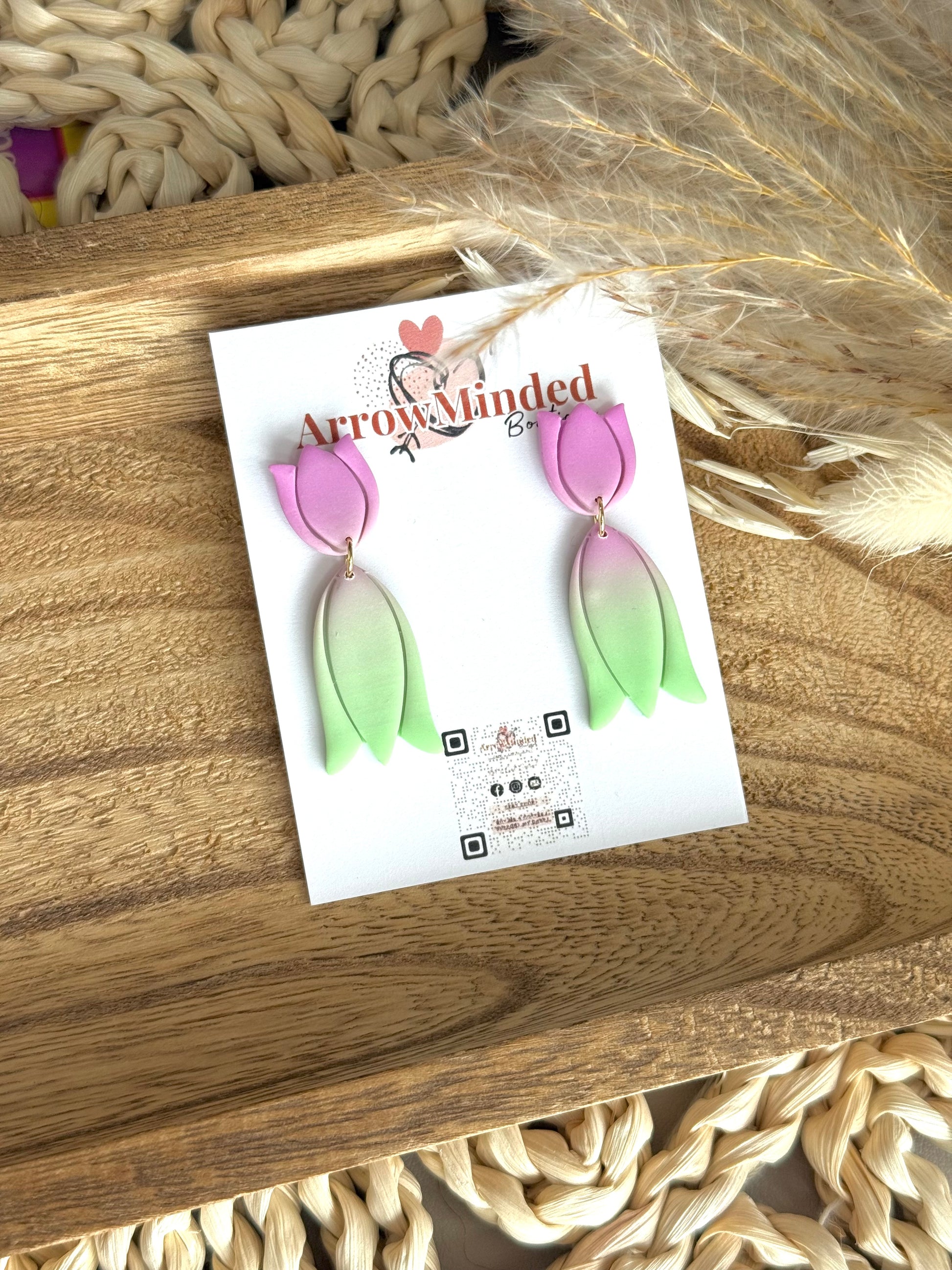 Handmade Neon & Neutral Tulip Bloom Earrings