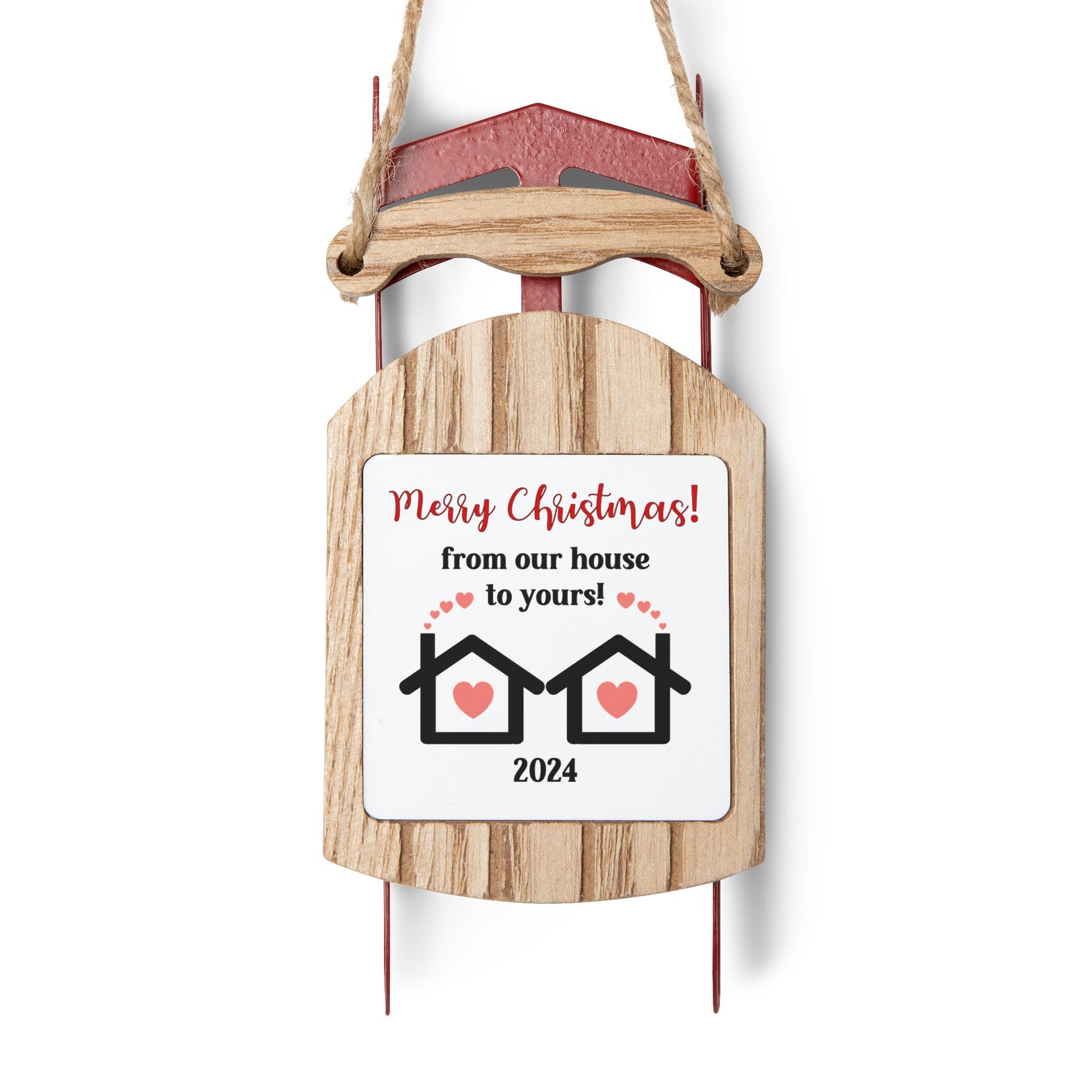 Nothing spreads holiday cheer like a personalized ornament that adds the right vibe, at the right corner. Add an extra festive touch to your home thanks to the sled shape. All ornaments come with a convenient twine thread for effortless hanging.