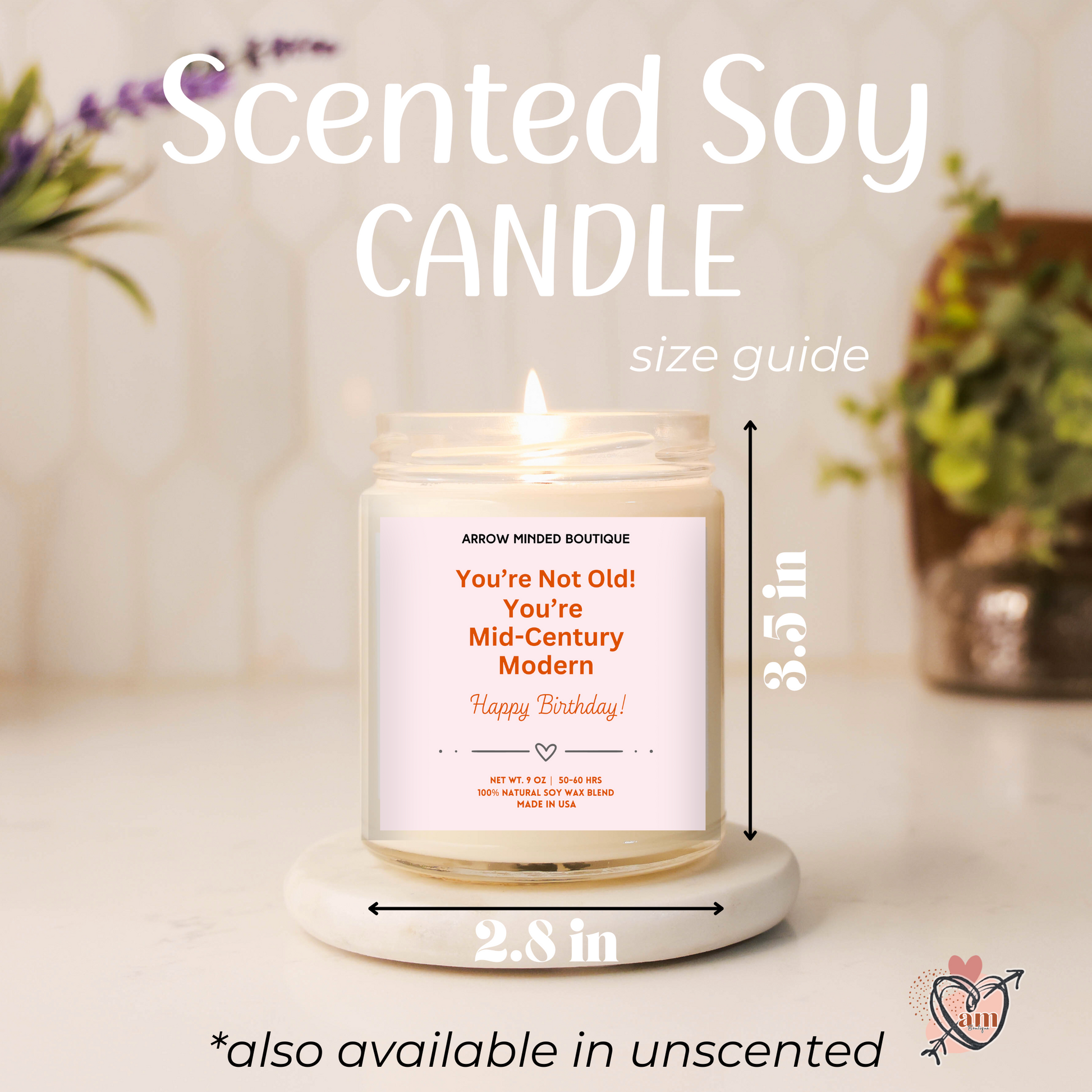 This scented candle is the perfect gift for a friend who loves a good laugh. The 'I'm Not Old, I'm Mid-Century Modern' design adds humor and style to any space. With a variety of scent options to choose from, including holiday favorites like Christmas Warmth, this eco-friendly candle will create a cozy atmosphere wherever it's placed. Perfect for anyone looking to add a touch of warmth and fragrance to their home.
