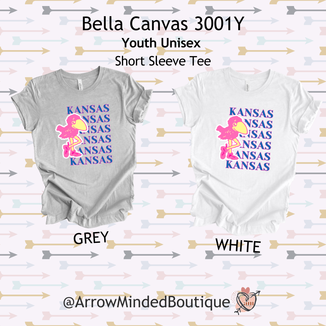 This Youth Tee featuring a cute pink bird design is perfect for young University of Kansas fans. Made with extra lightweight, ring-spun cotton, this tee is comfortable and soft to the touch. The retail fit ensures a perfect, comfy fit for all occasions, while the crew neckline delivers a versatile, modern style. It is relevant for young fans of the University of Kansas, ideal for casual wear, game days, and school spirit occasions.